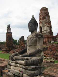 Saturday (the 4th of July!!) was our day trip to Ayutthaya (the old capital of Thailand), which is a little over an hour away by bus. When we got there, our first stop was the Ayutthaya Historical Center, which was basically another mediocre museum. Thankfully, we didn't spend much time there. From there we drove a little way to an elephant camp, where we all go to ride elephants in pairs (and yes, Mom, there will be pictures). We were driven to a mall to have a lunch before we headed to the ruins of Ayutthaya. I think the best thing to do at this point is to post pictures: